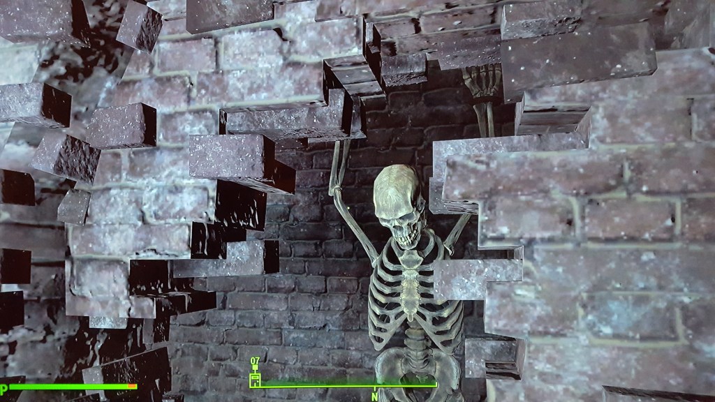 In Fallout 4’s Commonwealth, there’s a location on the eastern side of the map called The Castle. In one of the rooms, you’ll find a hole in the brick wall that reveals a chained-up skeleton. While similar to the predicament the victim finds himself in at the end of the aforementioned short story, it’s not a definite reference to it… until you notice a literal cask of Amontillado on the floor nearby.