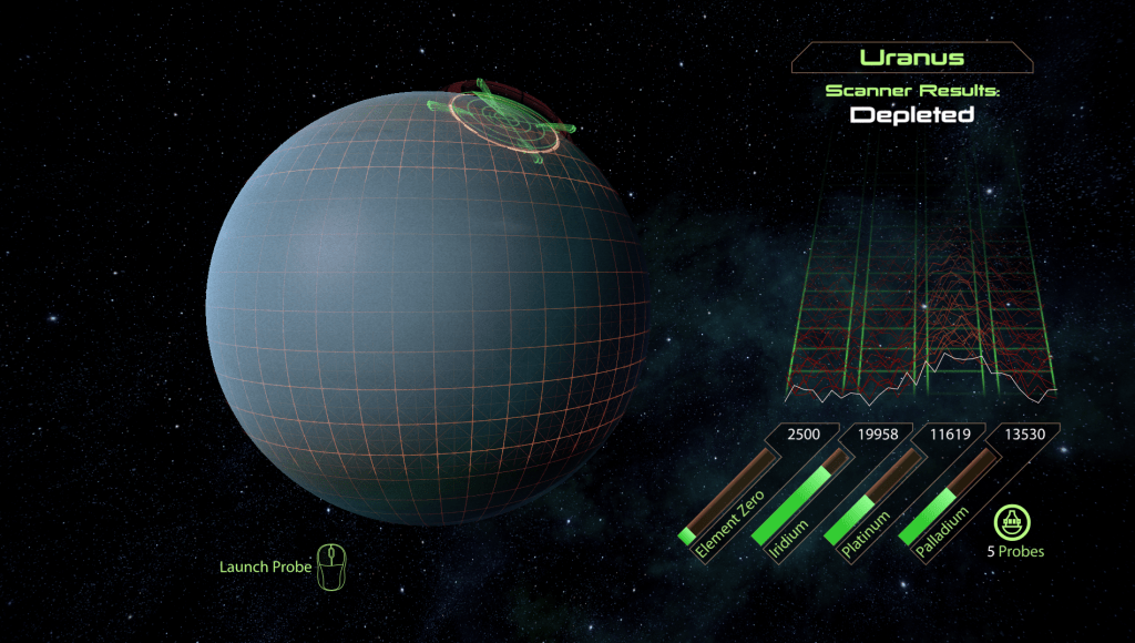 There’s a lot to do in Mass Effect 2. You can recruit team members, fight aliens, solve political conflicts, and explore the galaxy. We’re going to focus on that last item. Part of exploring the galaxy involves scanning planets for resources that are used to upgrade your ship and other equipment. When you open the scanning mini-game, it’ll tell you if the planet is rich, moderate, or poor in resources (or completely depleted), a stat which updates in real-time as you gather. When you launch a probe to collect these resources, your ship’s AI, EDI, will proclaim, “Probe launched,” with all the emotion of a dead tree stump. Unless, that is, you’re scanning a particular planet in humanity’s own solar system.